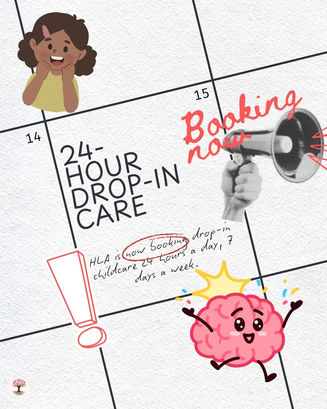 Our drop-in childcare center operates 24 hours, 7 days a week.